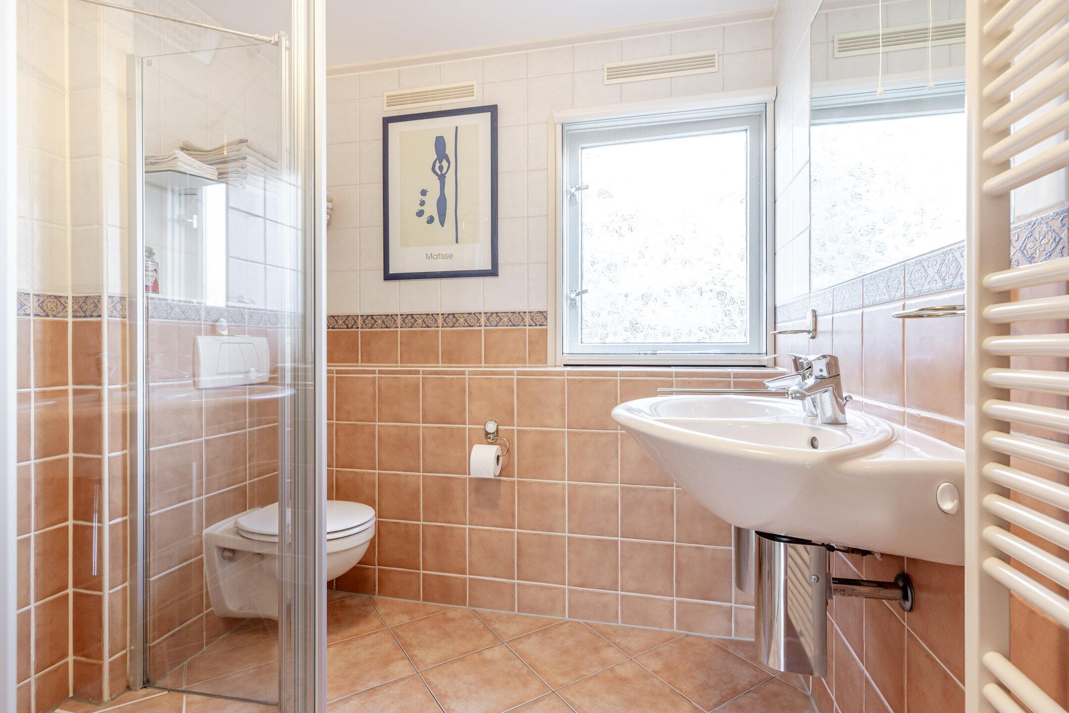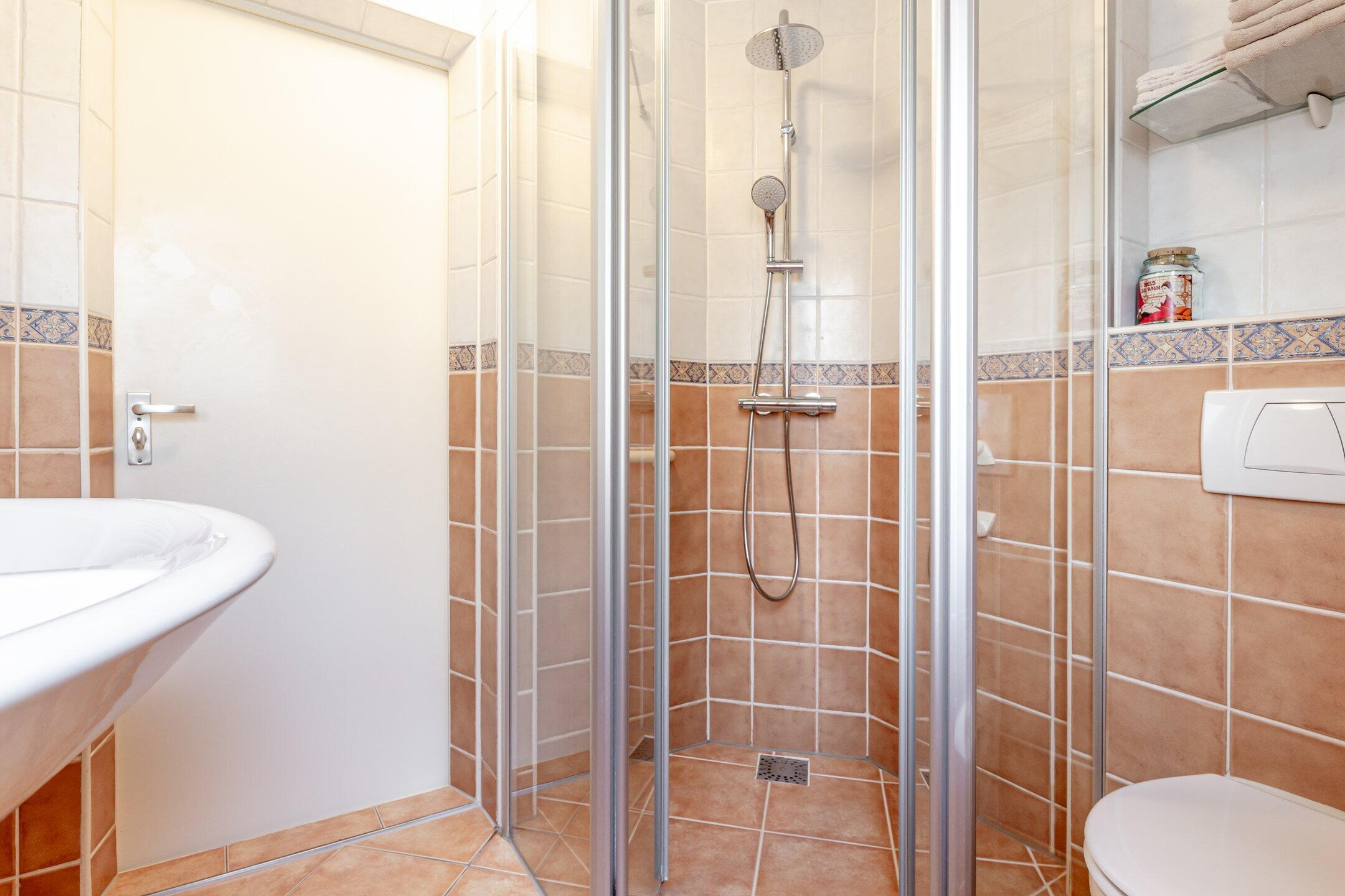 - Douche, toilet, en wastafel